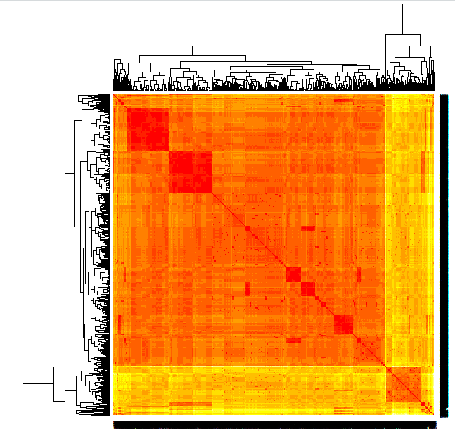 heatmap(Dist, Rowv=TRUE, Colv="Rowv", symm = TRUE)